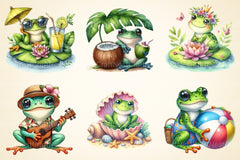 Leap with this Summer Frog Clipart Bundle, featuring frog designs, perfect for summer animal crafts.