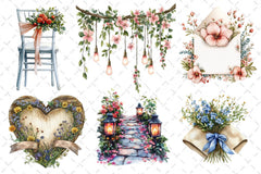 Marry with this Summer Garden Wedding Set Clipart Bundle, featuring outdoor wedding designs, perfect for garden ceremony crafts.
