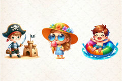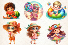 Summer Happy Cartoon Kid Clipart Bundle