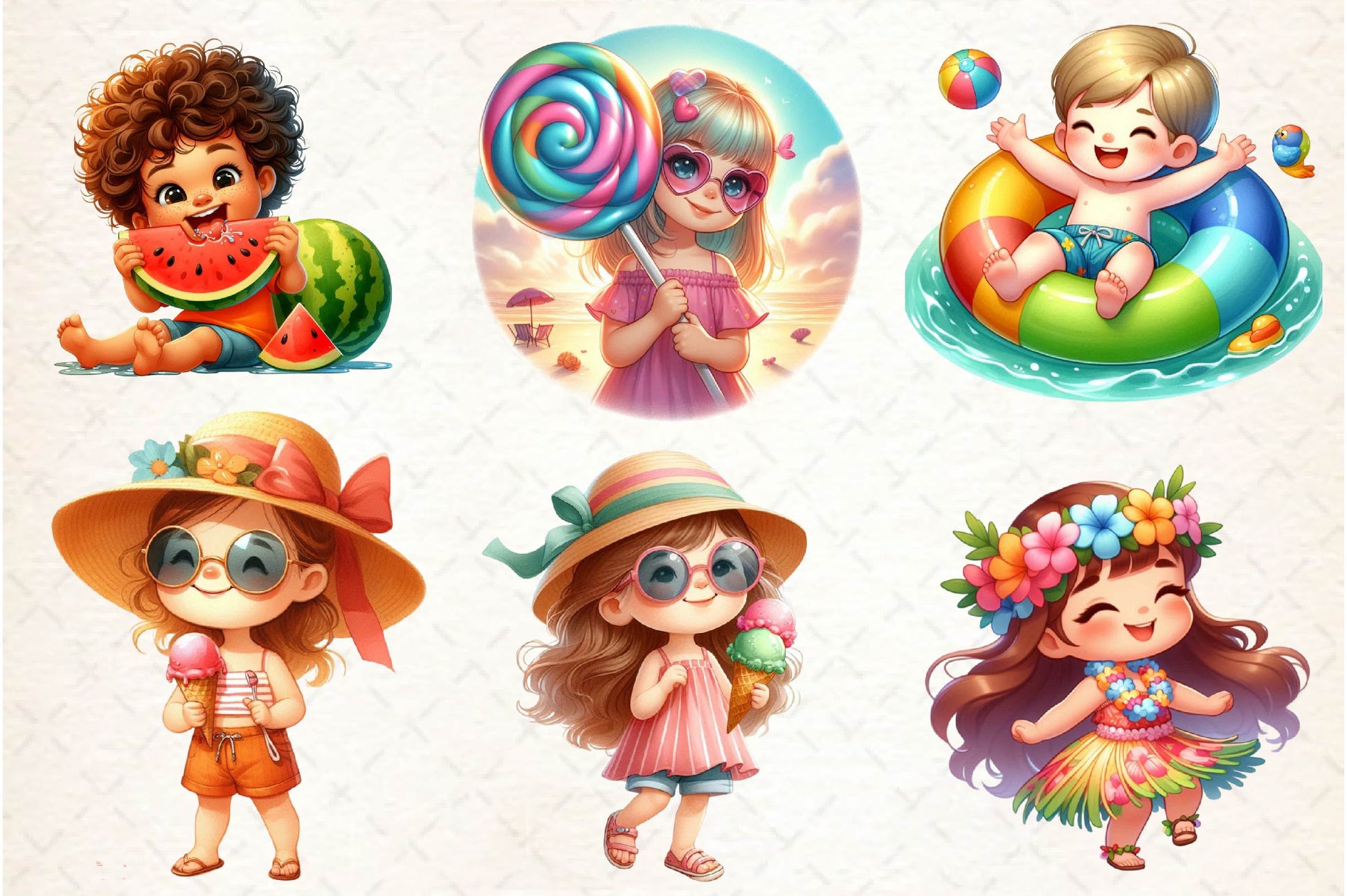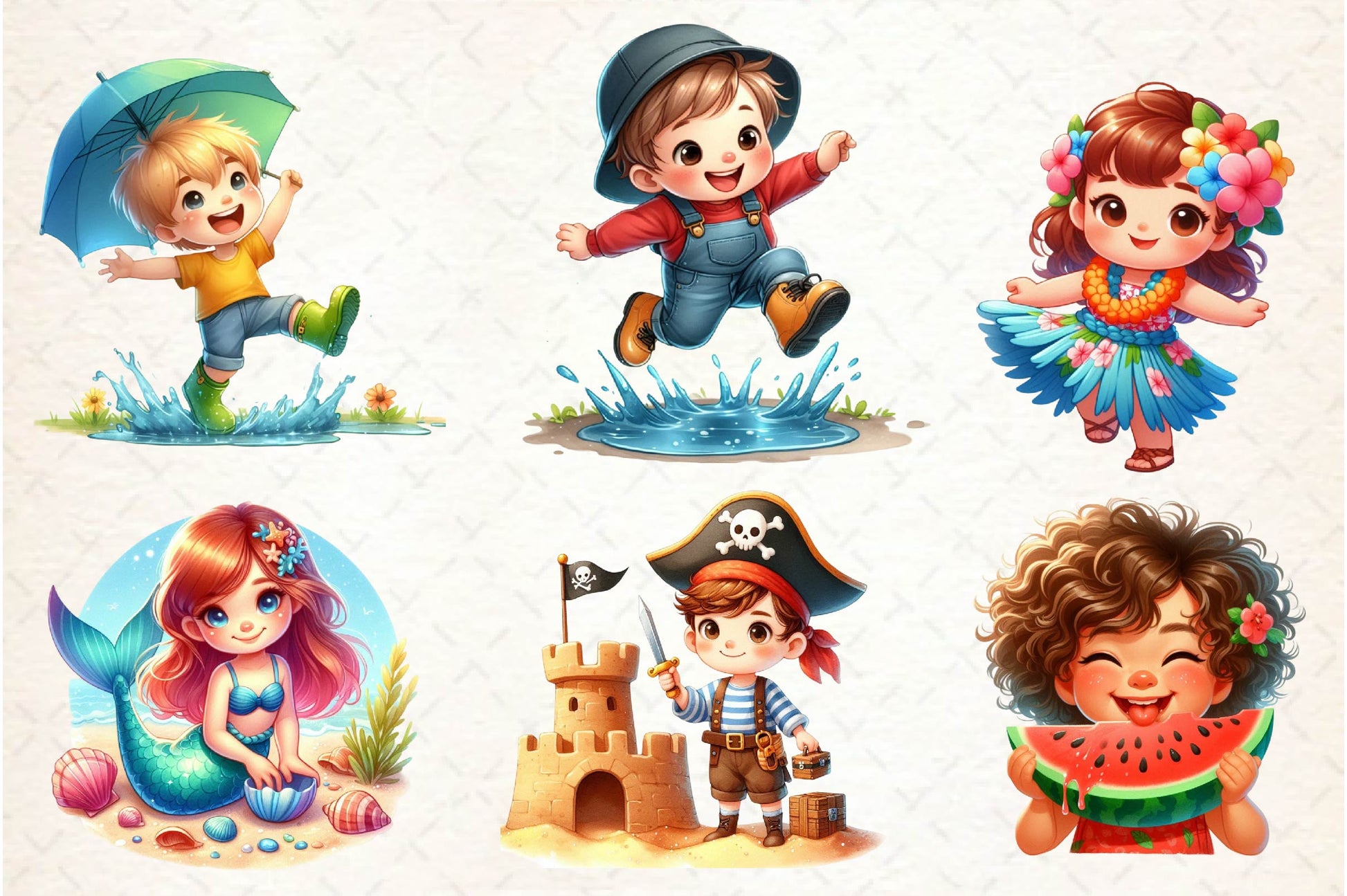 Happy with this Summer Happy Cartoon Kid Clipart Bundle, featuring happy cartoon kids, perfect for joyful summer crafts.