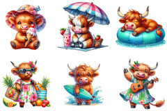 Summer Highland Cow Clipart Bundle 2