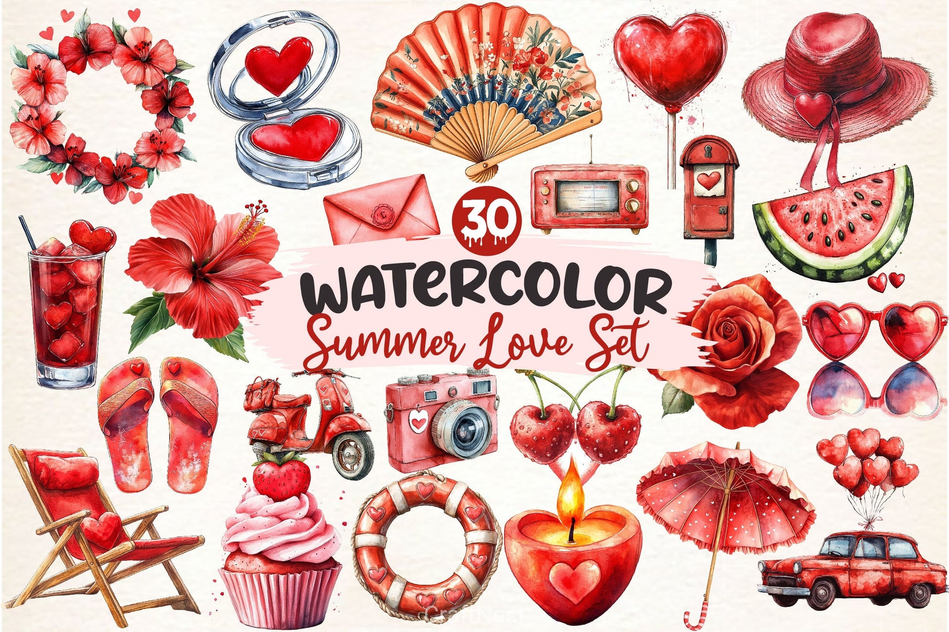 Romance with this Summer Love Set Clipart Bundle, featuring romantic summer designs, perfect for love season crafts.
