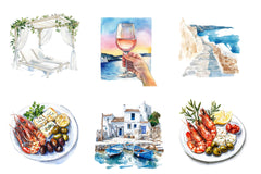 Island with this Summer Santorini Vacation Clipart Bundle, featuring Greek vacation designs, perfect for summer travel crafts.