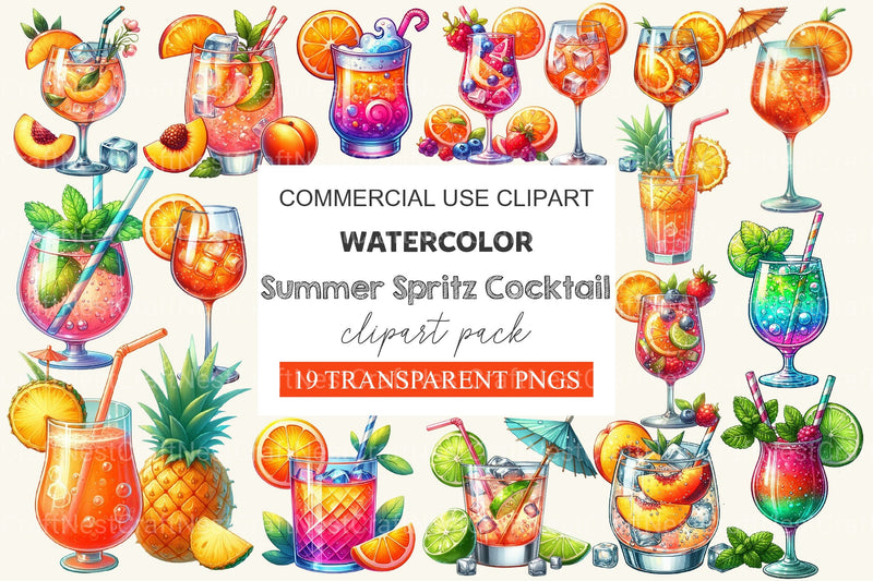 Refresh with this Summer Spritz Cocktail Clipart Bundle, featuring refreshing drink designs, ideal for summer party crafts.