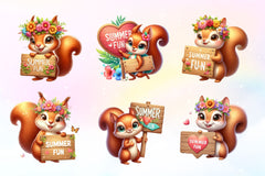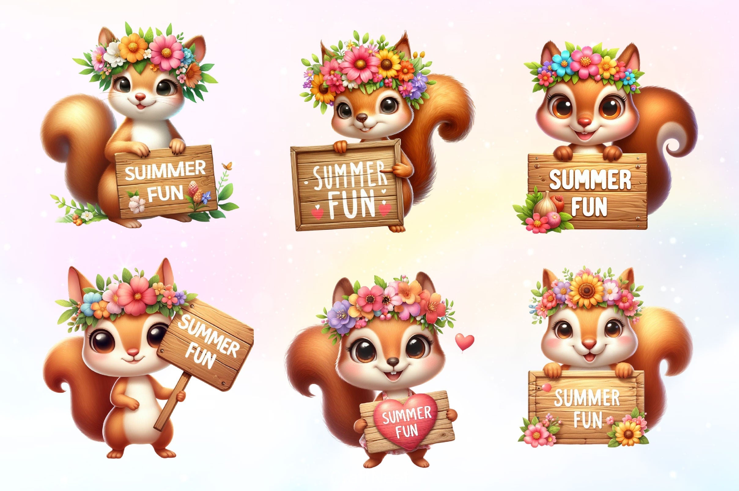 Cute squirrels enjoying summer activities for seasonal animal projects.