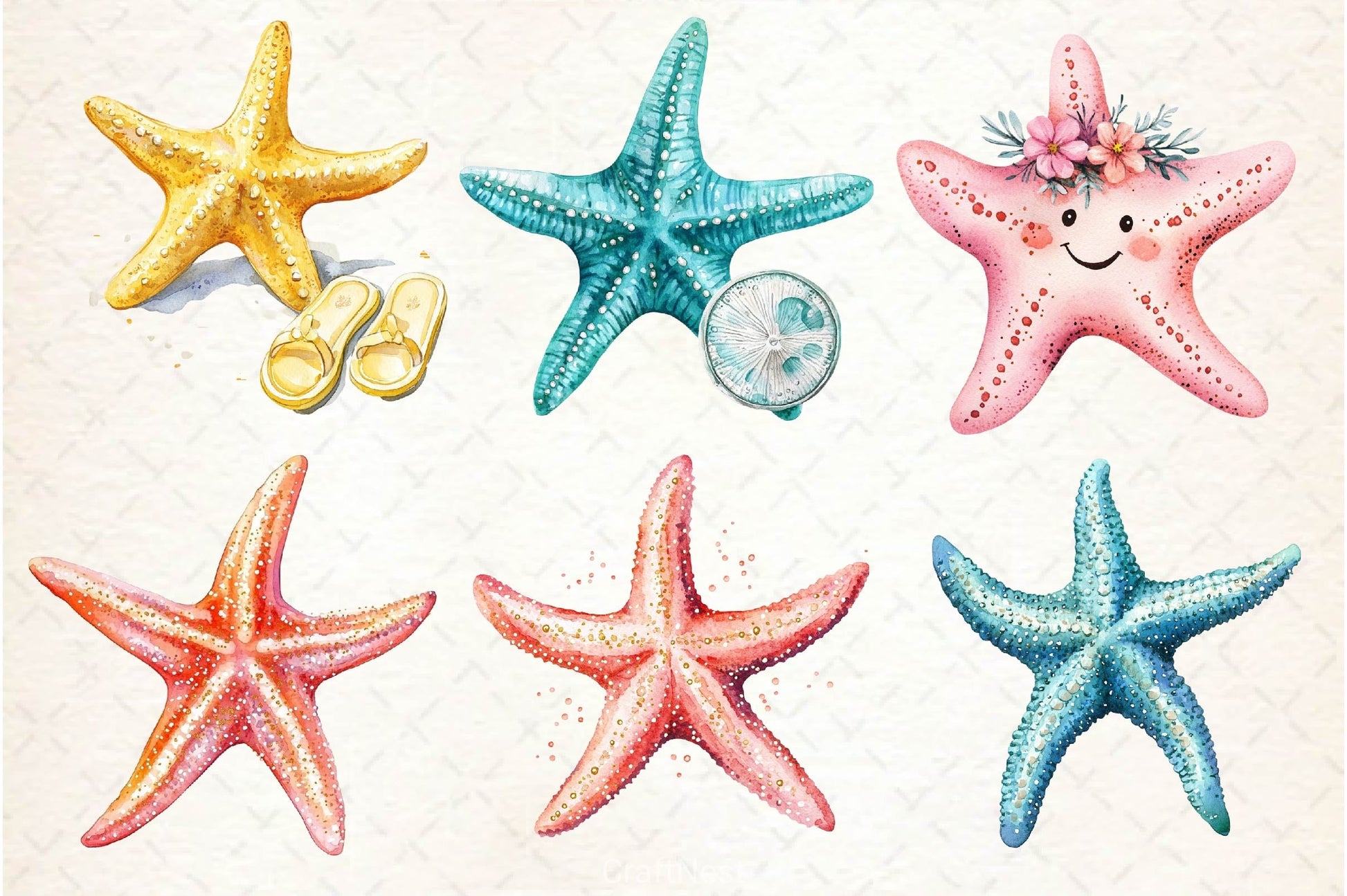 Star with this Summer Starfish Clipart Bundle, featuring ocean creature designs, perfect for beach sea animal crafts.