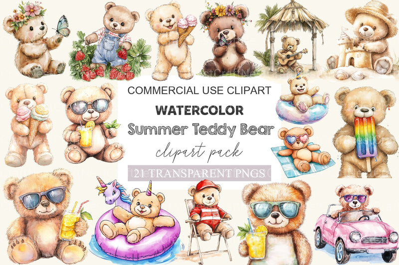 Cuddle with this Summer Teddy Bear Clipart Bundle, featuring sunny bear designs, perfect for warm season baby crafts.
