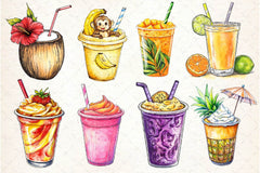 Summer Tropical Smoothie Cup Clipart Bundle 2