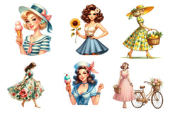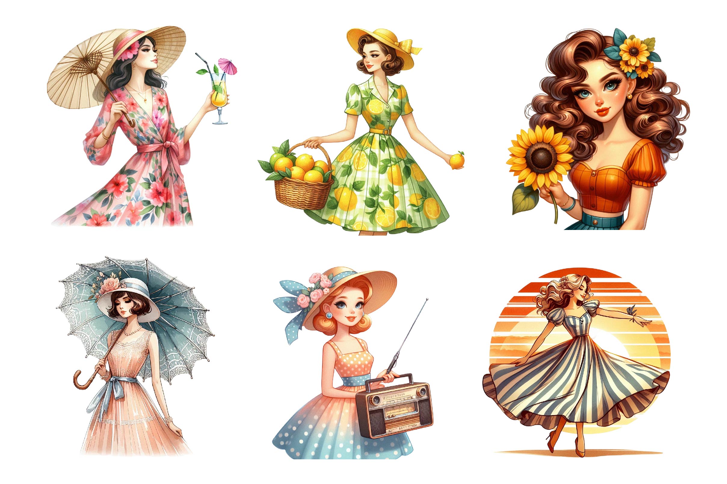 Retro with this Summer Vintage Woman Clipart Bundle, featuring vintage summer women, perfect for classic people crafts.