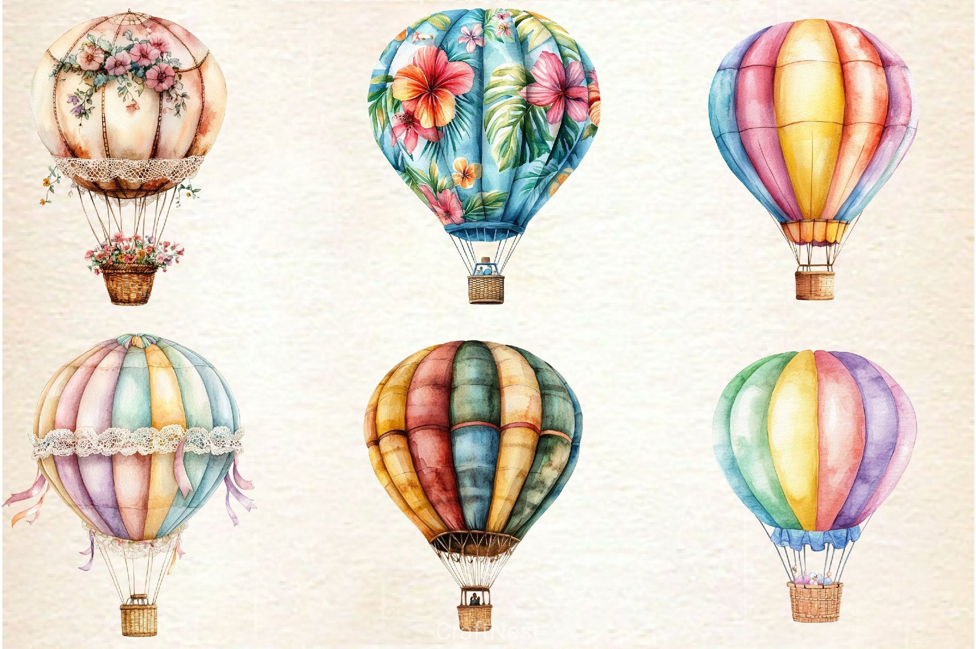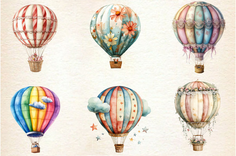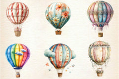Summer Whimsical Hot Air Balloons Clipart Bundle