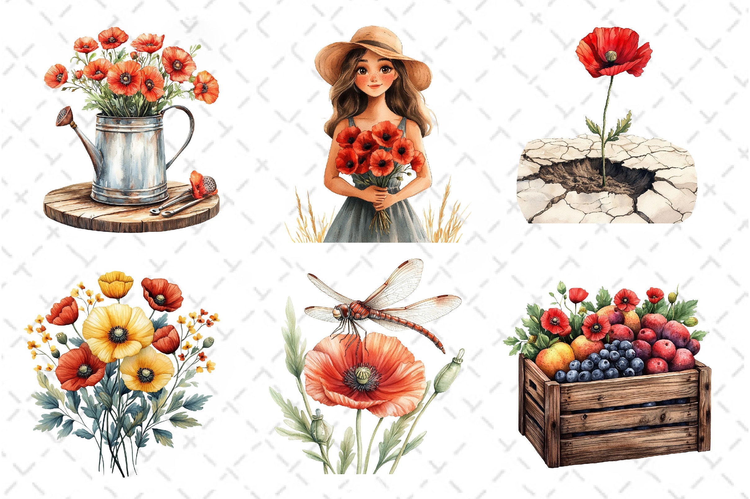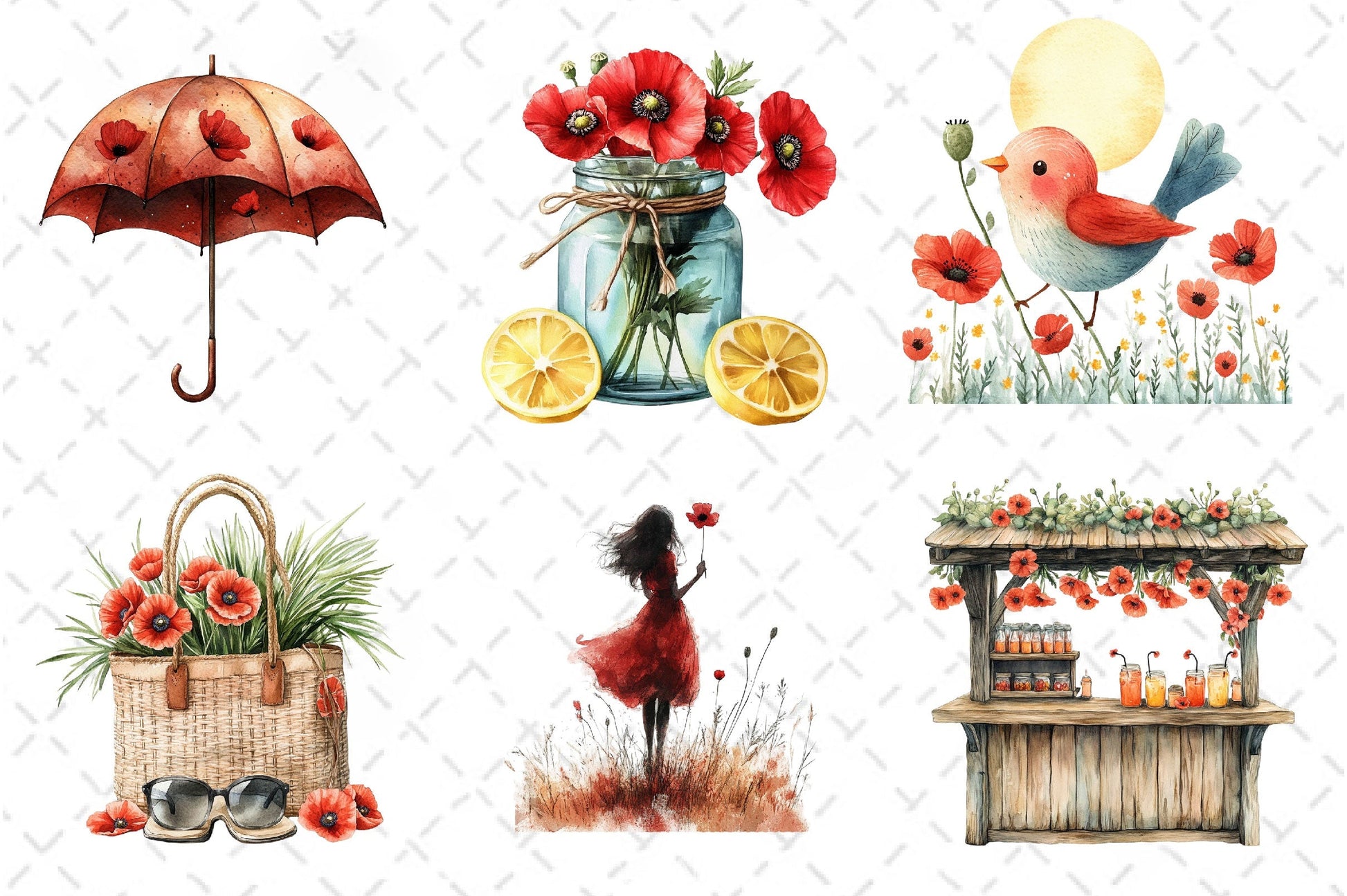 Bloom with this Summer With Poppy Flowers Clipart Bundle, featuring bright flower designs, perfect for summer garden crafts.