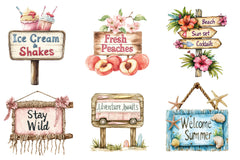 Sign with this Summer Wooden Sign Board Clipart Bundle, featuring rustic message designs, ideal for summer communication crafts.