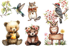 Explore with this Summer Woodland Animals Clipart Bundle, featuring forest creature designs, ideal for nature summer crafts.