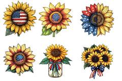 Shine with this Sunflower 4th Of July Clipart Bundle, featuring patriotic flower designs, ideal for summer Independence Day crafts.
