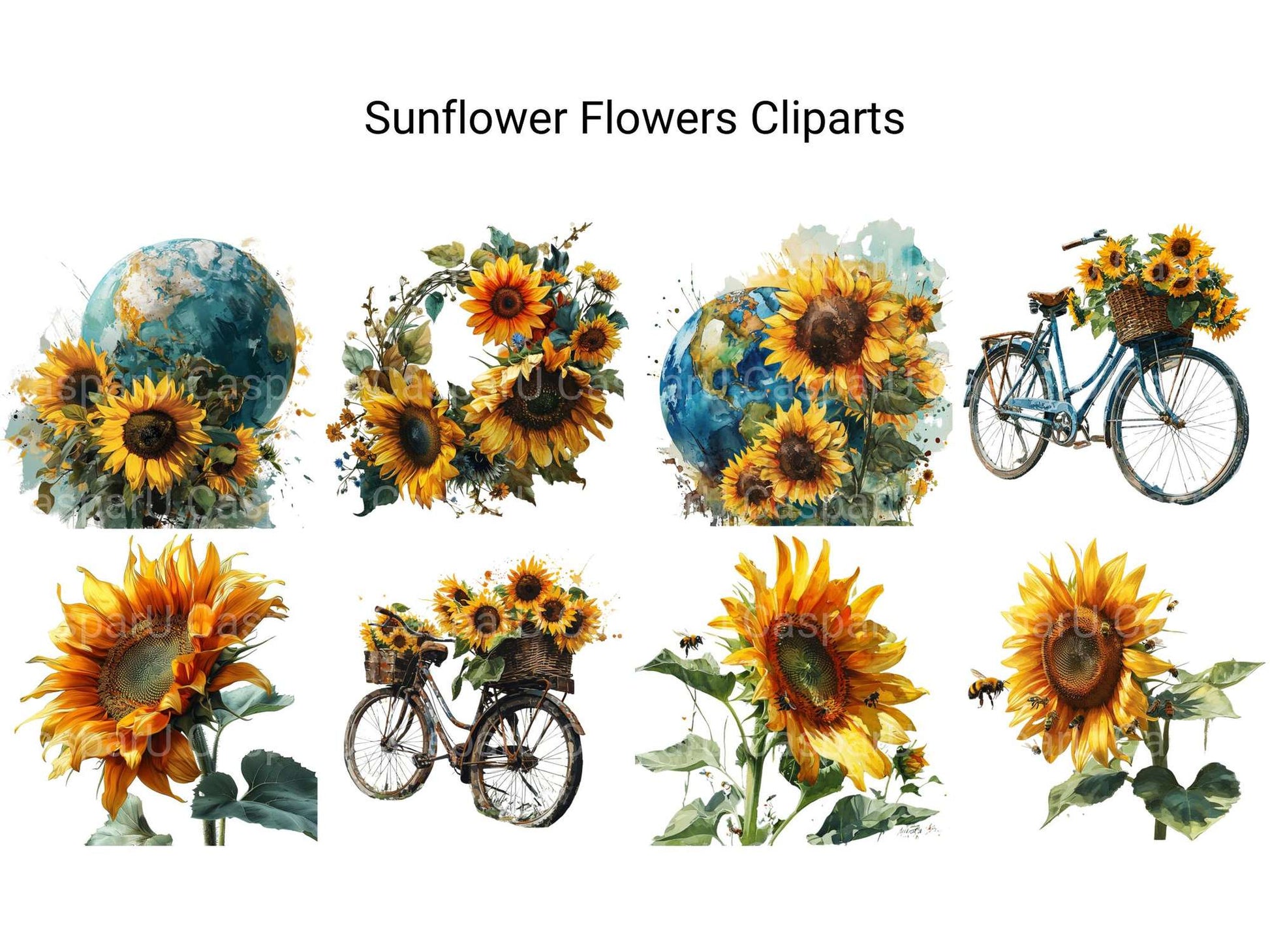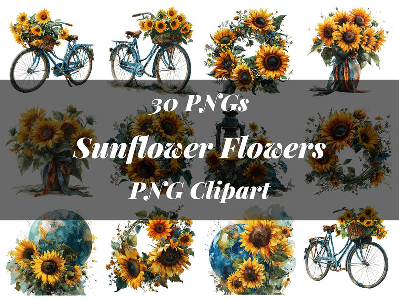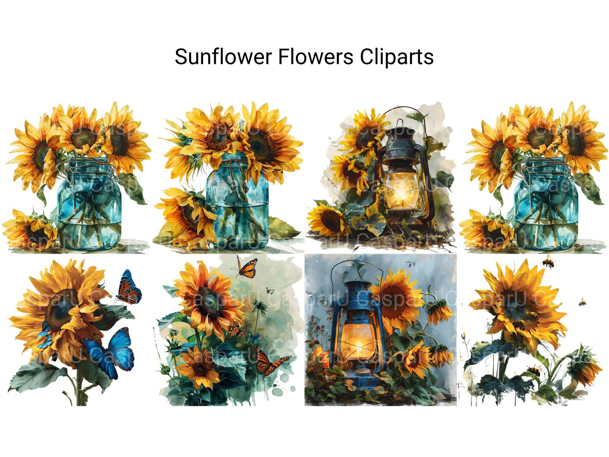 Shine bright with this Sunflower Clipart set, featuring bold sunflower designs, ideal for cheerful projects.