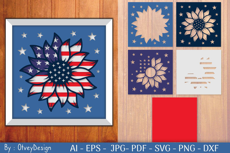 Sunflower USA Shadow Box Layered Papercut SVG Bundle