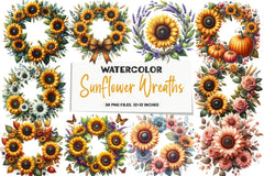 Enhance your creative projects with our Sunflower Wreaths Clipart Bundle, featuring vibrant and detailed sunflower designs perfect for seasonal crafts, invitations, and home decor. Ideal for digital scrapbooking, these high-quality images bring a touch of nature's beauty to your creations. Transform your designs with this versatile collection, perfect for weddings, parties, and more.