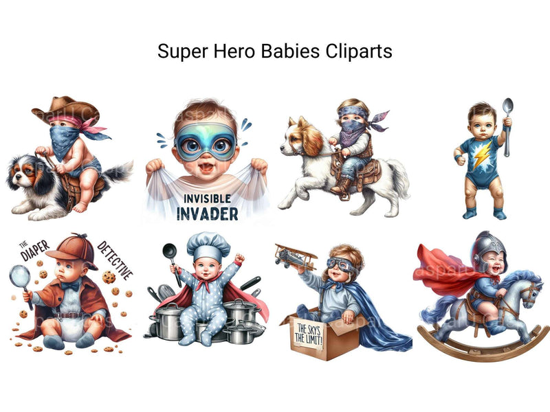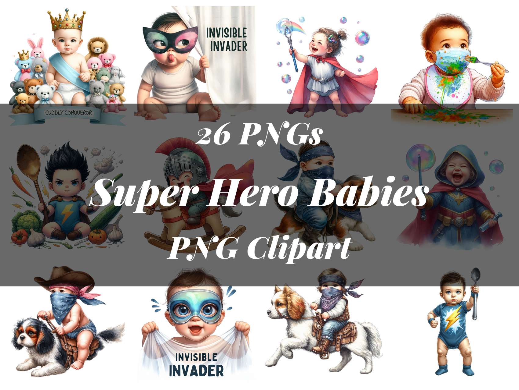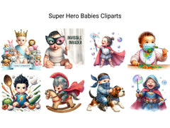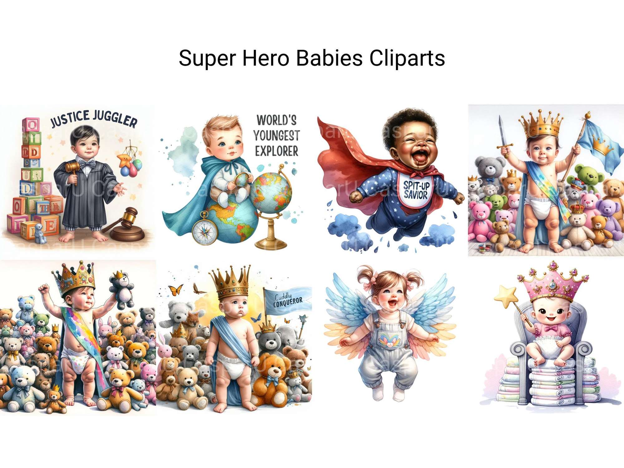 Save the day with this Super Hero Watercolor Babies Clipart set, featuring heroic baby designs, ideal for fun projects.