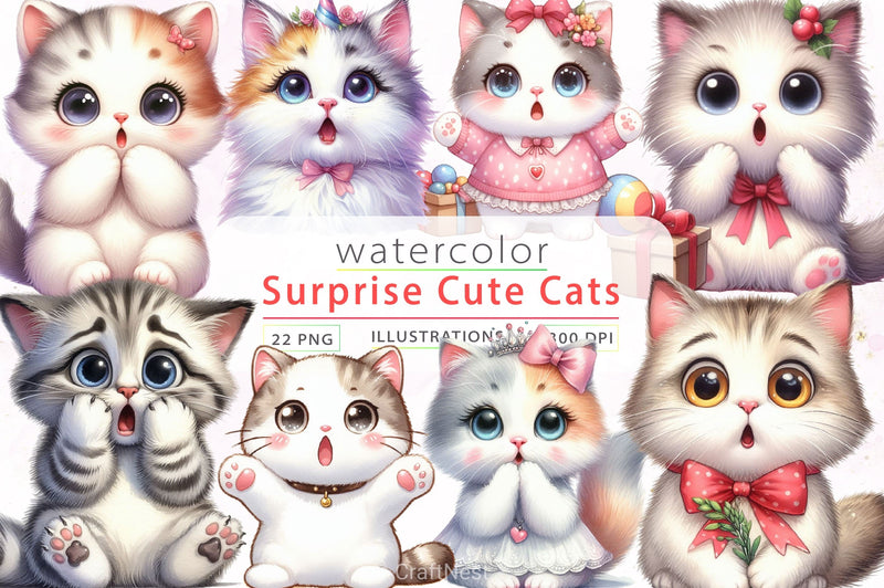 Surprise Cats Clipart Bundle
