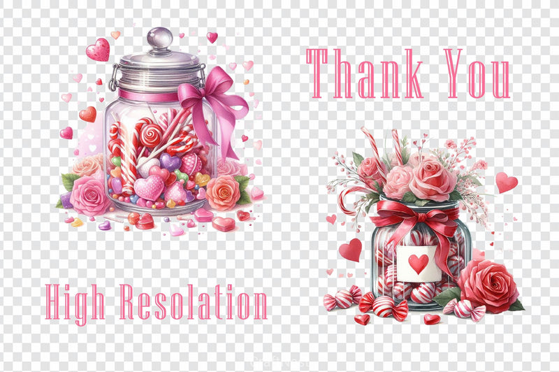 Sweet Valentine candy jars perfect for romantic confection projects.