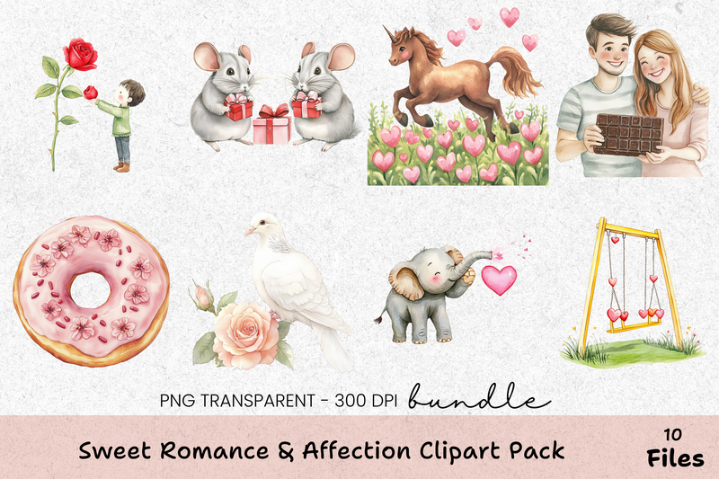 Unleash creativity with the Sweet Romance & Affection Clipart Bundle, a charming collection perfect for heartfelt projects. Featuring whimsical designs, this bundle is ideal for wedding invitations, love-themed crafts, and romantic scrapbooking. Elevate your creations with these enchanting illustrations, designed to inspire affection and warmth. Perfect for digital and print projects, this versatile clipart set adds a touch of romance to any design. Discover endless possibilities with this delightful collection, crafted to bring your artistic visions to life.