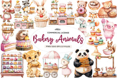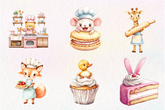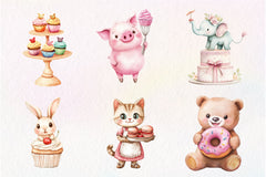 Bake with this Sweets Cute Bakery Animals Clipart Bundle, featuring dessert animal designs, ideal for kawaii food crafts.