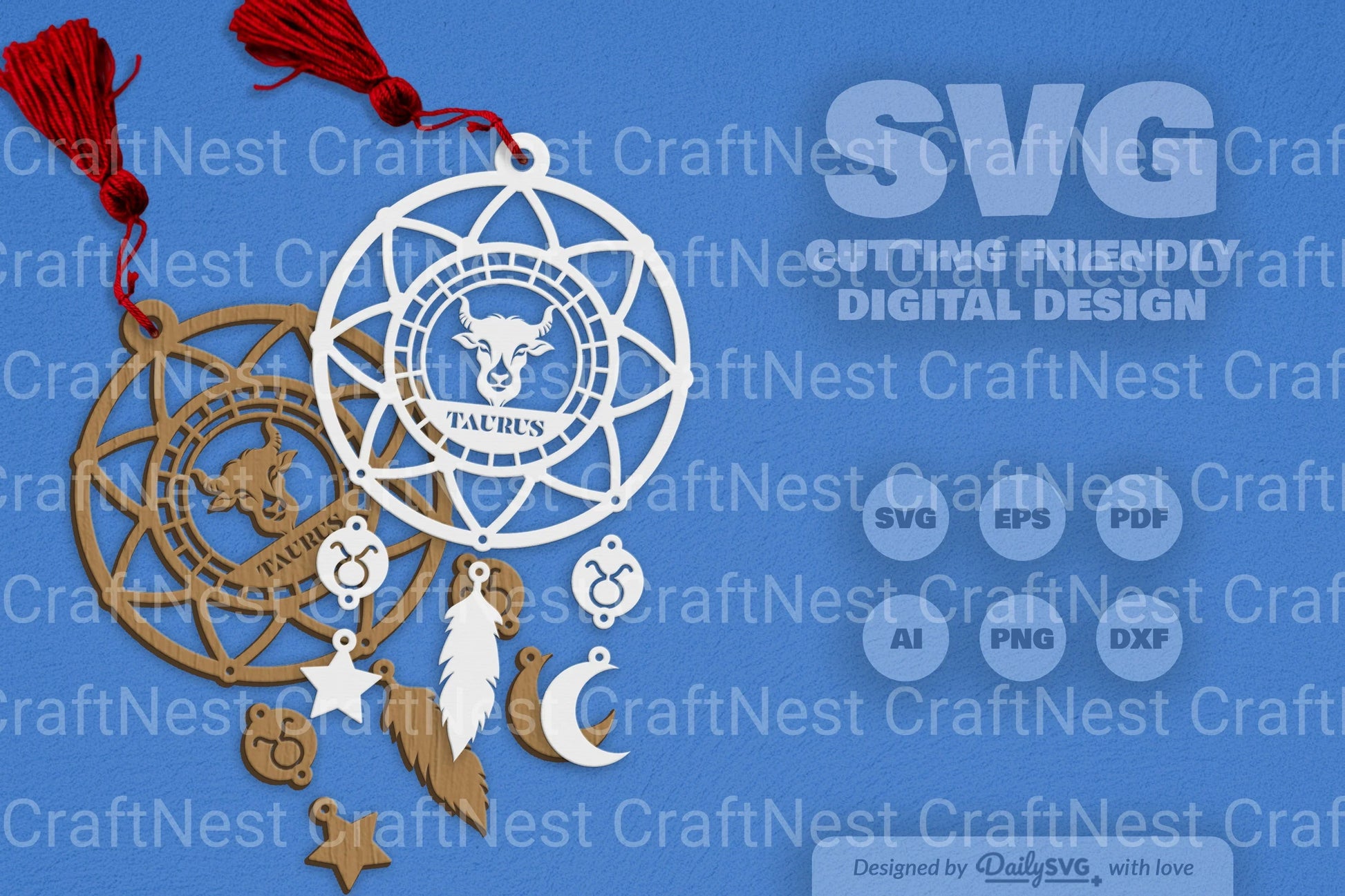 Capture celestial beauty with the Taurus Dream Catcher Set SVG Bundle. Perfect for crafting mystical home decor, this collection features intricate designs that bring the magic of the stars into your projects.