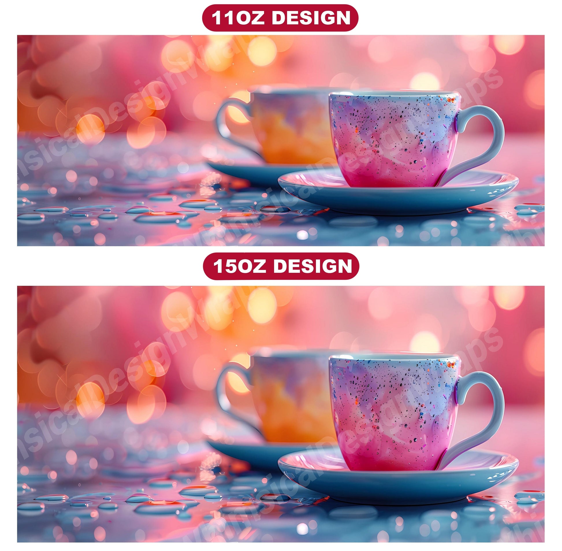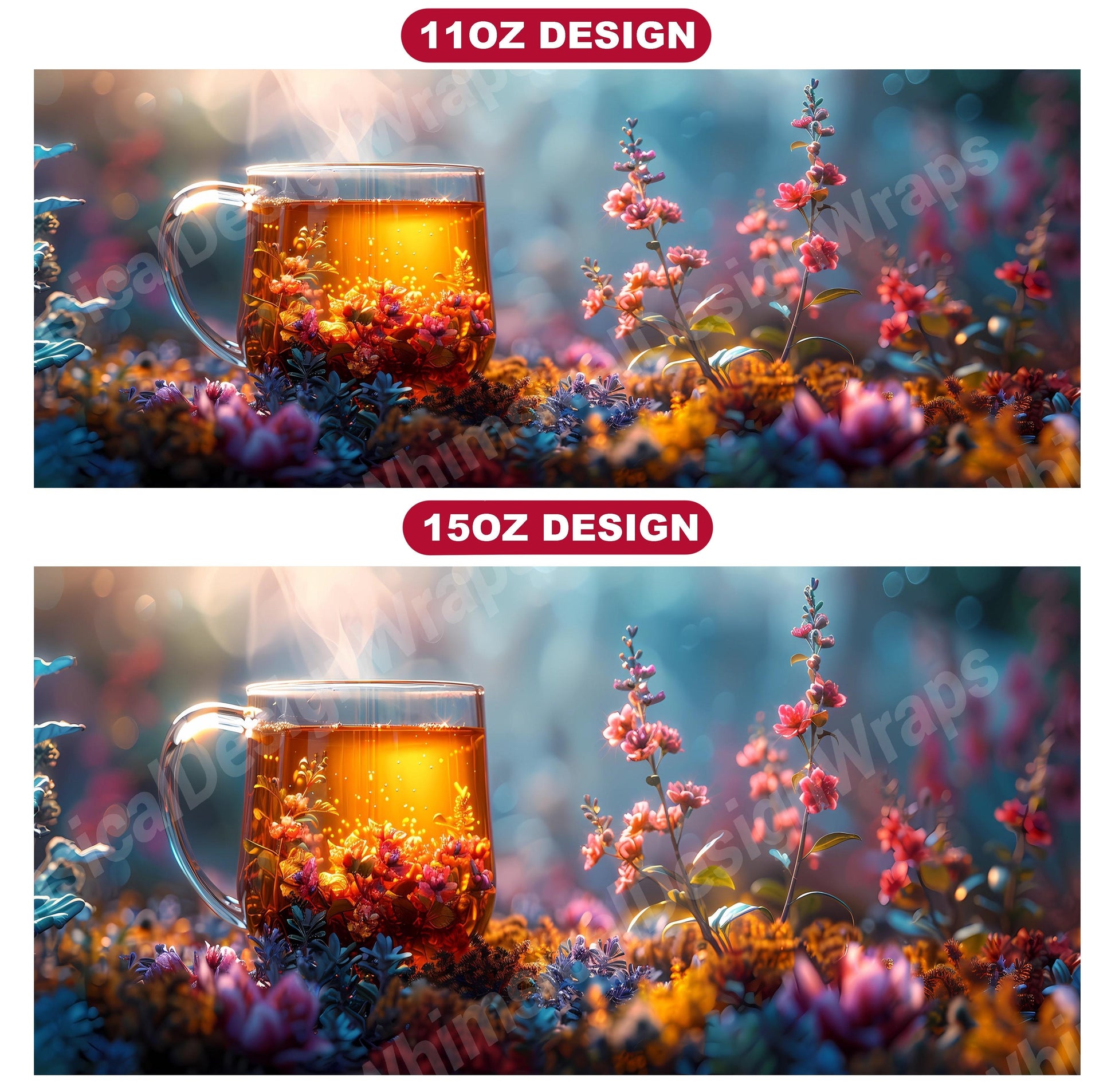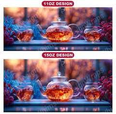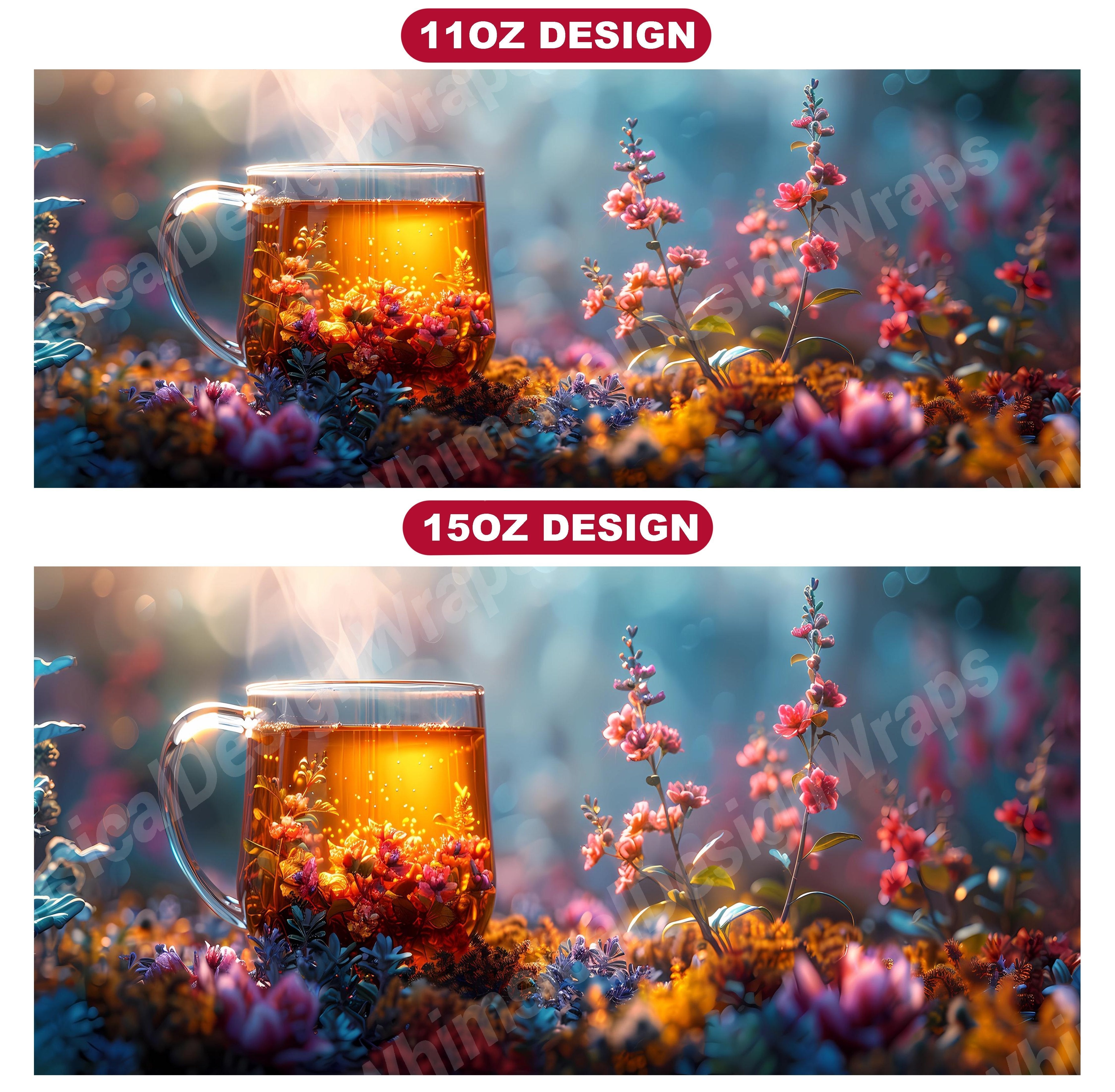 Transport yourself to a serene tea garden with our Tea Time-themed mug wraps. Featuring whimsical illustrations of lush foliage, tranquil ponds, and delicate teapots, these wraps capture the essence of a peaceful tea retreat. Wrap your mug in the beauty of nature and let the imagery of blooming flowers and tranquil settings inspire moments of relaxation and tranquility as you enjoy your morning cup of tea.