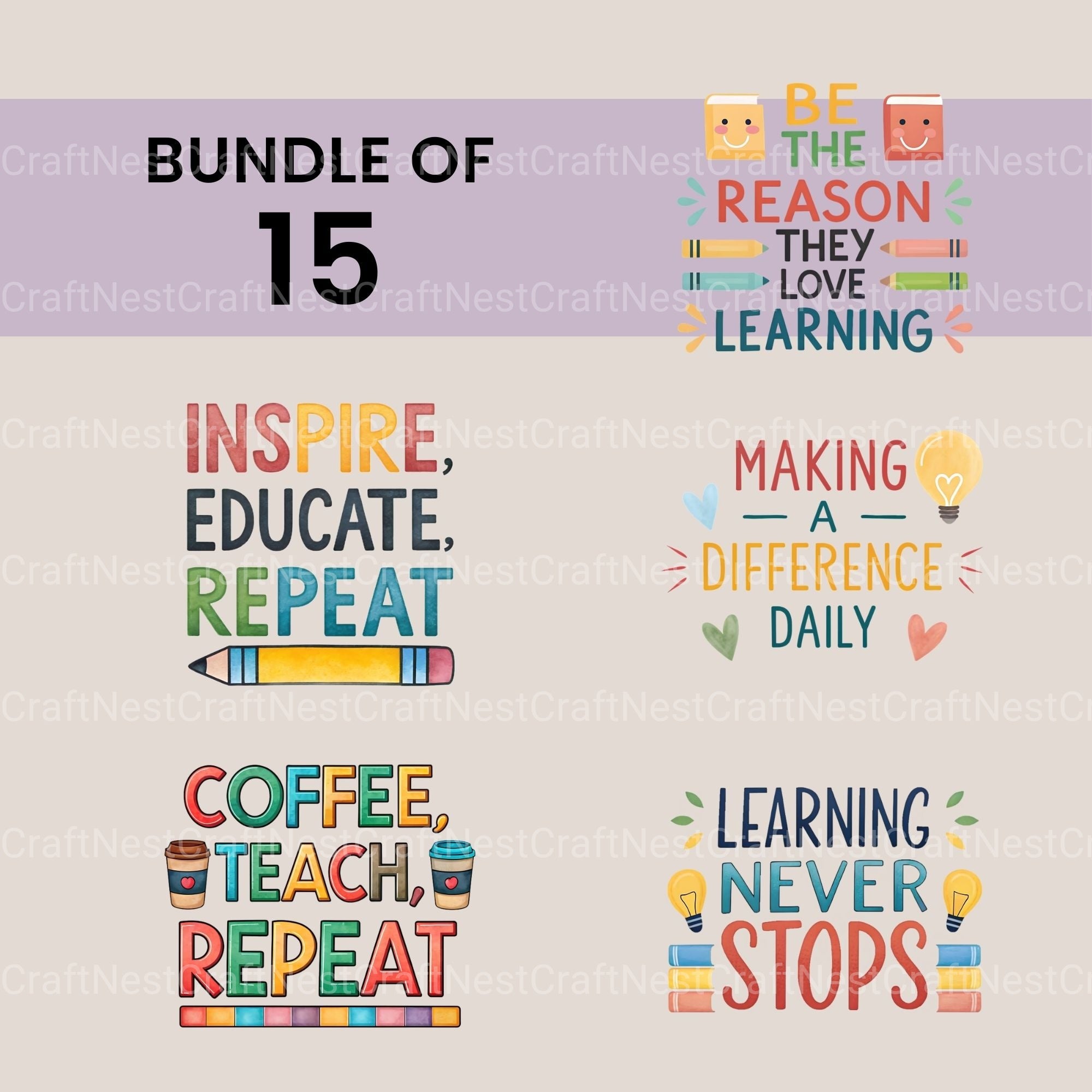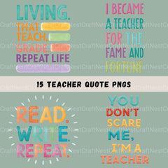 Educate with this Teacher Quotes 15 Clipart Bundle, featuring teacher saying designs, perfect for profession quote crafts.