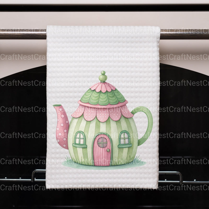 Steep with this Teapot Houses 15 Clipart Bundle, featuring teapot house designs, ideal for fairytale cottage crafts.