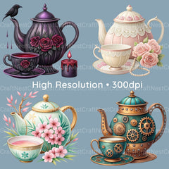 Sip with this Teatime 15 Clipart Bundle, featuring tea time designs, ideal for drinks vintage crafts.
