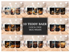 Cuddle up with nostalgia using our teddy bear-themed digital mug wraps. These cozy designs showcase adorable teddy bears in various poses, evoking warmth and comfort with every sip of your favorite hot beverage.