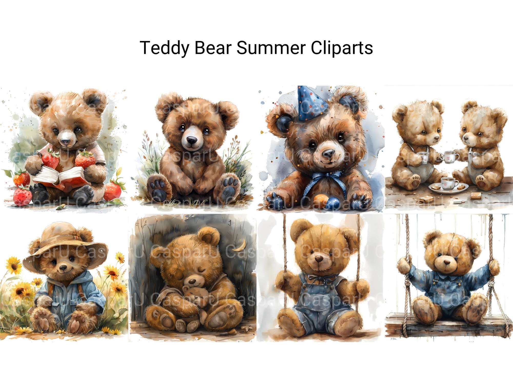 Celebrate the coziness of summer with our Teddy Bear Summer clipart, featuring adorable illustrations of teddy bears in various summer settings. These designs capture the charm and warmth of teddy bears, perfect for adding a cute and comforting touch to your summer creations.