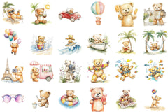 Travel with this Teddy Bear Summer Vacation Clipart Bundle, featuring vacation bear designs, ideal for summer travel crafts.
