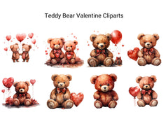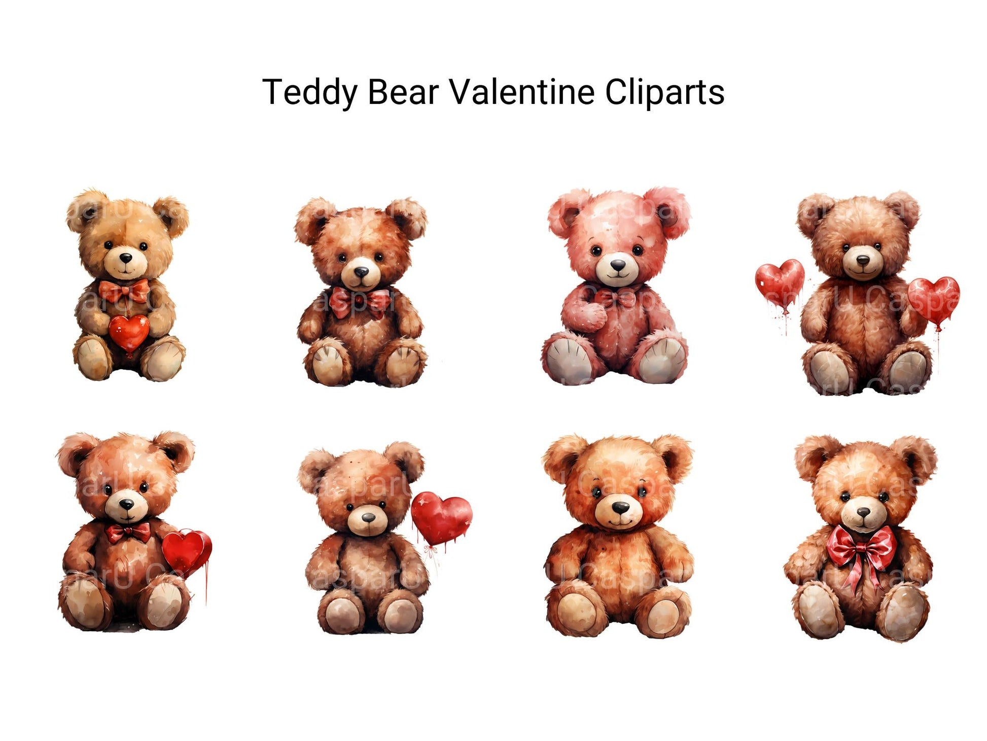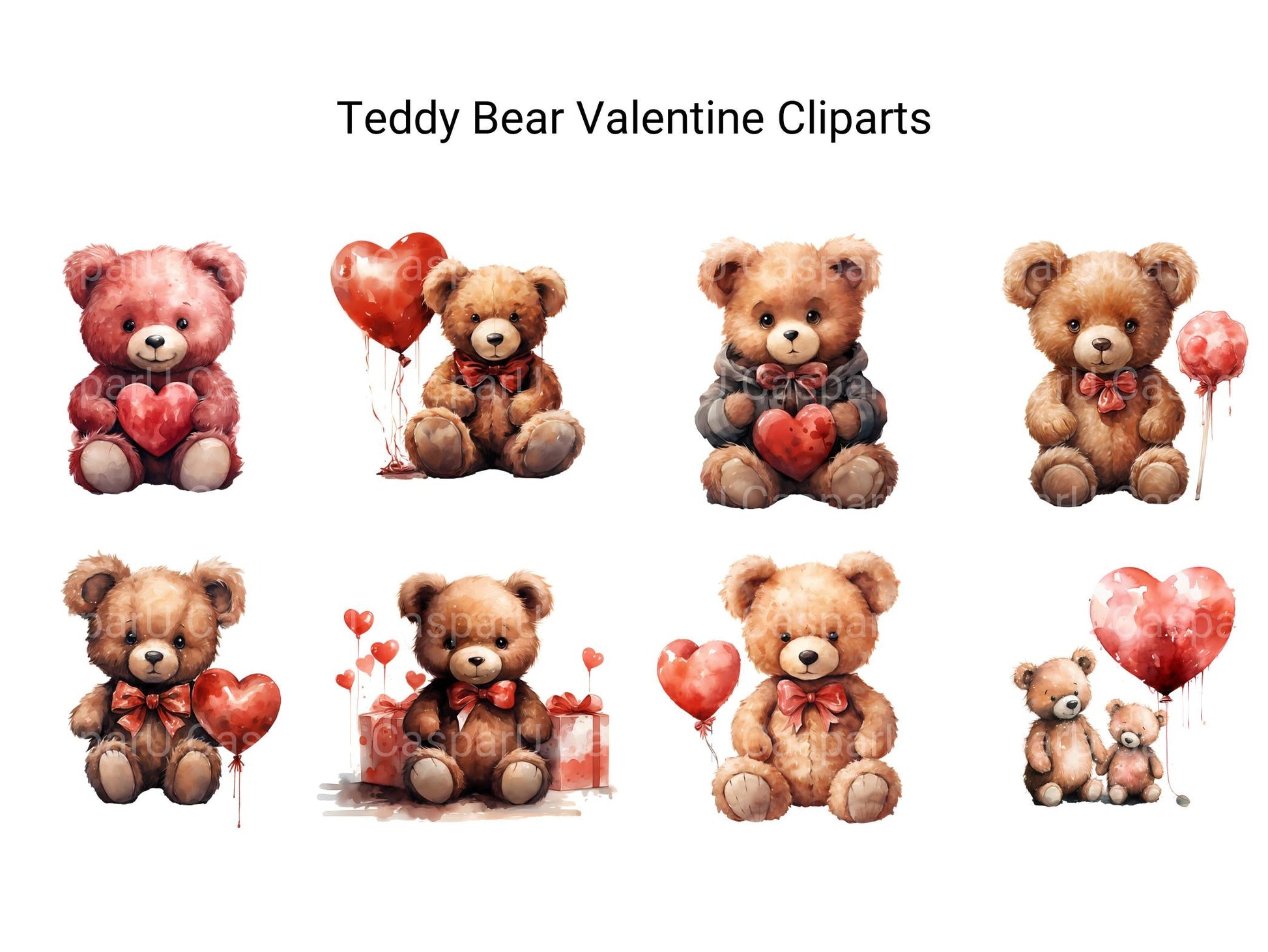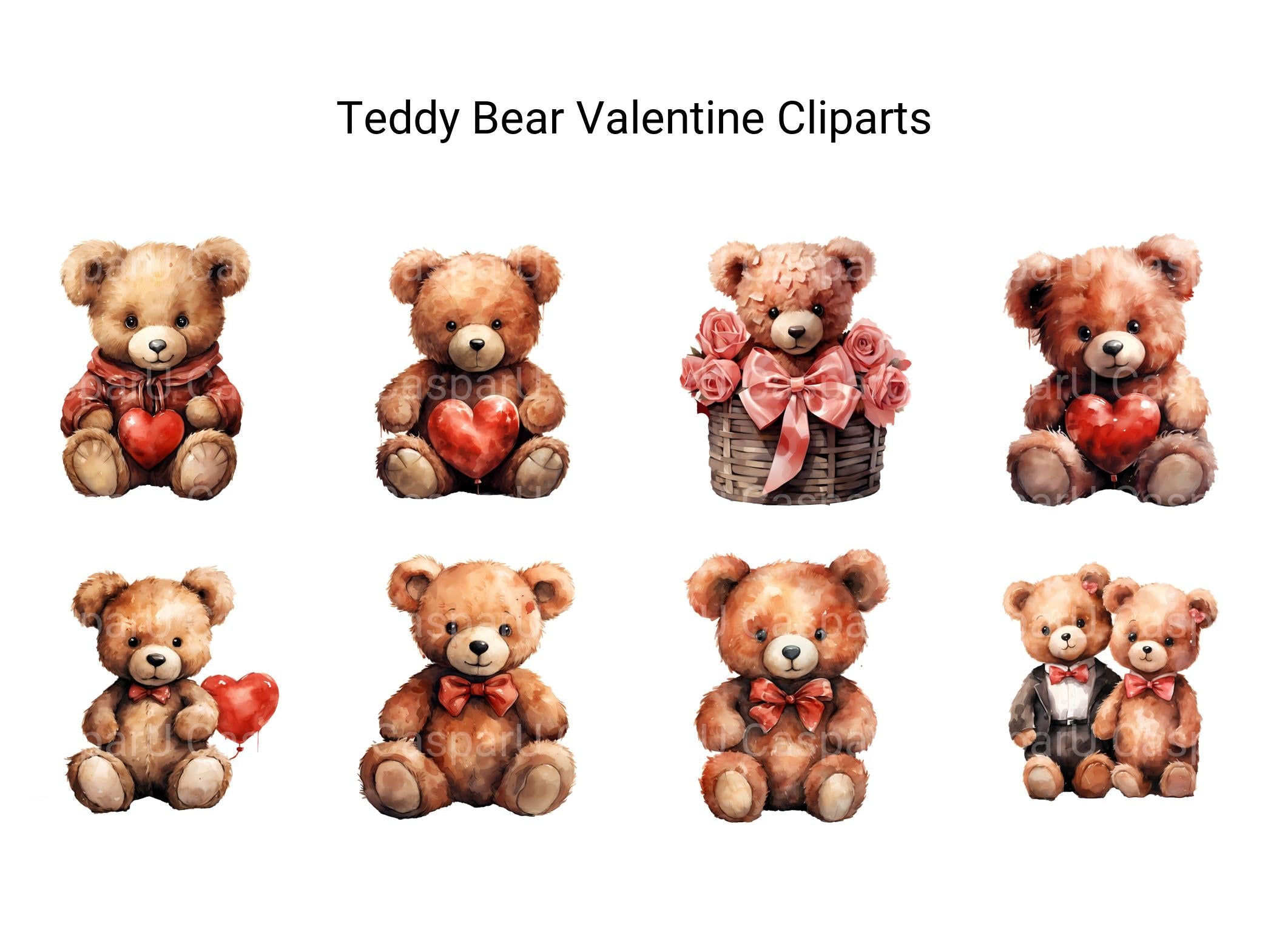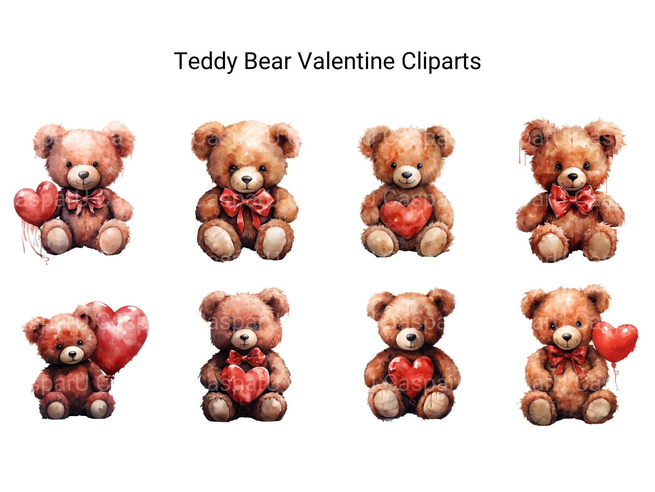 Embrace the cuddly charm of Valentine's Day with digital clip art featuring adorable teddy bear illustrations. From plush toys to heartwarming scenes, these sweet images capture the innocence and affection of childhood, perfect for expressing love and tenderness. Let the irresistible cuteness of teddy bears warm your heart and brighten your celebrations, inviting viewers to cuddle up with love and cherish the simple joys of companionship.