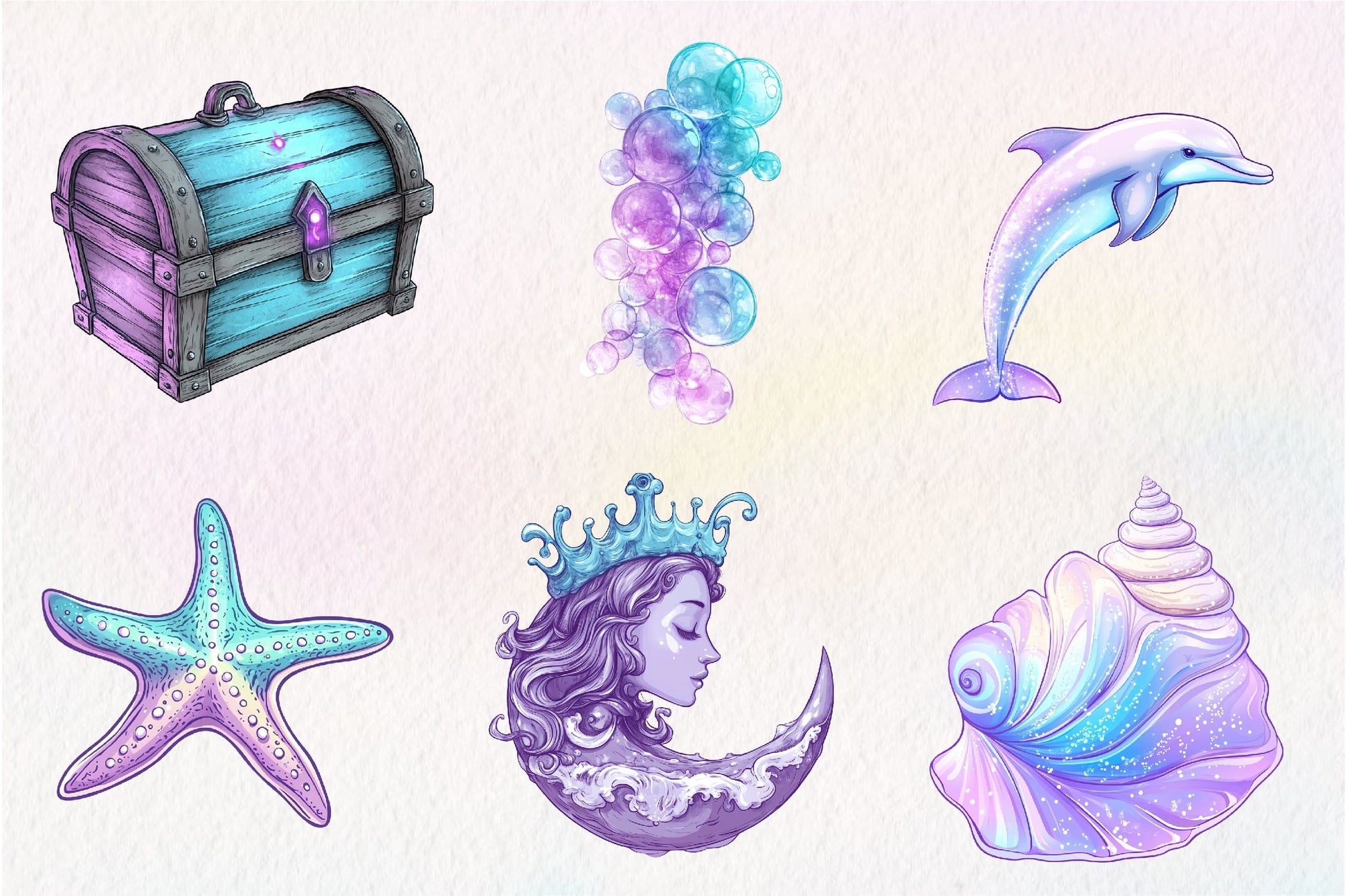 Dive with this The Magical Ocean Clipart Bundle, featuring enchanted sea designs, ideal for magical sea animal crafts.