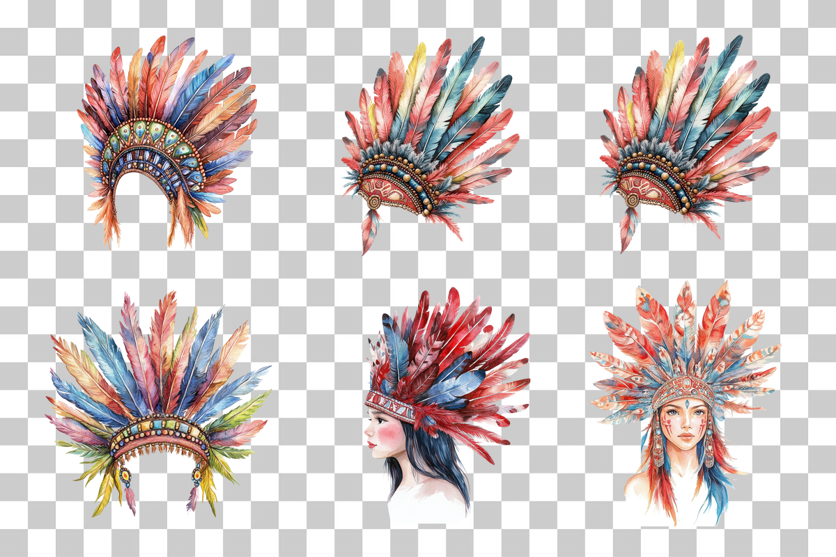 Unleash creativity with our Tribal Feather Headdress Clipart Bundle, featuring stunning, high-resolution designs perfect for boho-themed projects. Ideal for digital scrapbooking, invitations, and unique crafts, these vibrant illustrations bring a touch of tribal elegance to any creation. Elevate your artistic endeavors with this versatile collection, designed for both personal and commercial use. Transform your projects with the rich colors and intricate details of our headdress clipart, perfect for adding a cultural flair to your designs.