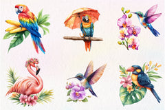 Fly with this Tropical Bird Jungle Bird Clipart Bundle, featuring exotic bird designs, perfect for tropical nature crafts.