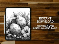 Bring a touch of paradise to your Easter celebrations with our digital coloring book, Tropical Easter! From palm-fringed beaches to vibrant blooms, each page invites you to escape to a tropical oasis and embrace the spirit of Easter in paradise. Let your creativity bloom as you add your own colors to these exotic designs, capturing the beauty and serenity of Easter in the tropics in every stroke.