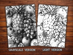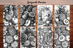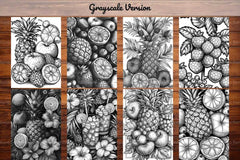 Immerse yourself in the exotic and vibrant world of tropical fruits with pages filled with intricate designs. Each illustration captures the lively colors and unique textures of fruits like mangoes, papayas, and kiwis. Perfect for a refreshing and creative coloring journey.