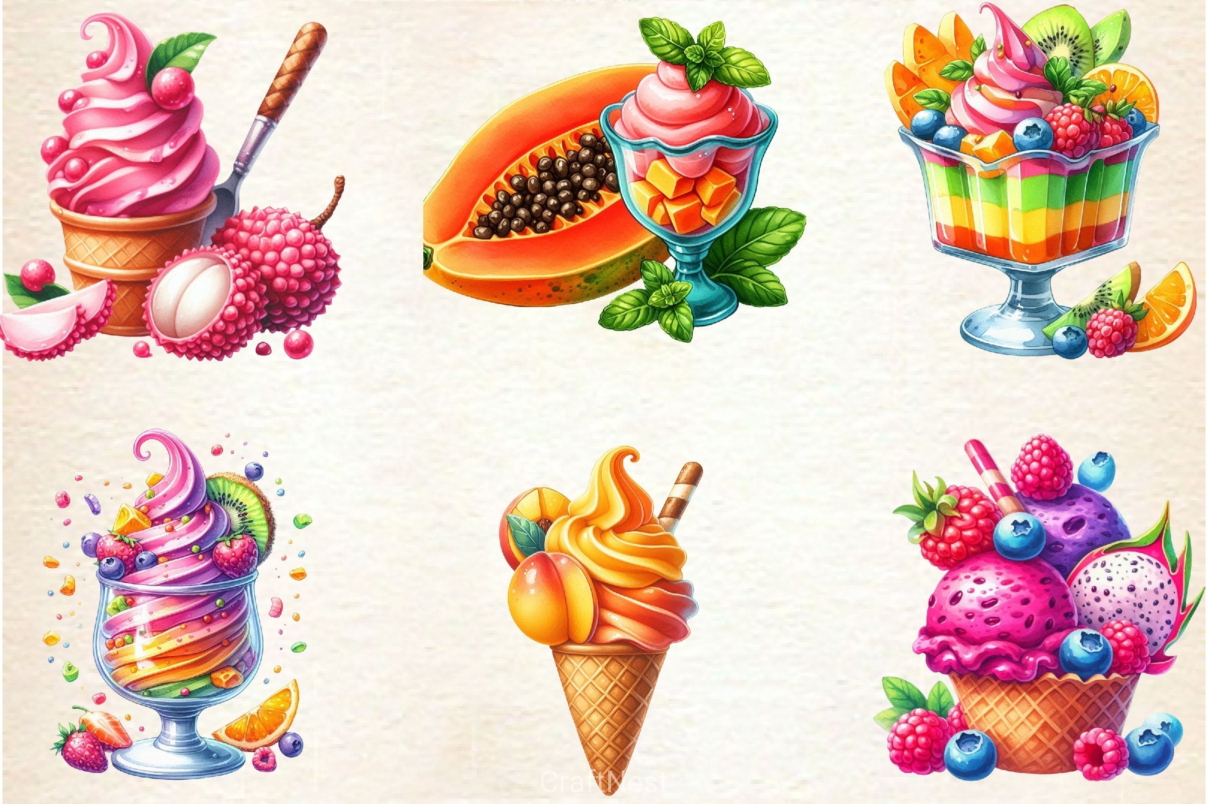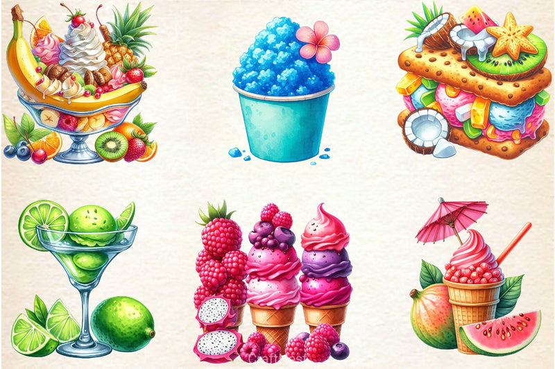 Tropical Ice Cream & Sorbets Clipart Bundle