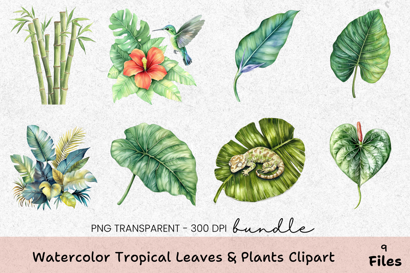 Transform your creative projects with our Tropical Leaves & Plants Clipart Bundle, featuring vibrant and exotic designs perfect for digital art, scrapbooking, and more. Dive into a lush paradise with these high-quality, hand-drawn illustrations that bring a touch of nature's beauty to your work. Ideal for invitations, posters, and home decor, this versatile collection is a must-have for any designer looking to add a tropical flair. Unleash your creativity and make your projects stand out with this stunning clipart set.