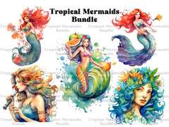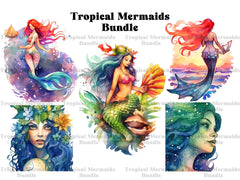 Dive into the vibrant depths with our Tropical Mermaids clip art. These enchanting digital illustrations depict mermaids amidst tropical waters, surrounded by colorful fish, coral reefs, and swaying palm trees, perfect for adding a touch of tropical paradise and aquatic beauty to your designs, whether for beach-themed parties, tropical vacations, or ocean-inspired artwork, inviting viewers into a world of sun-soaked serenity and underwater enchantment.