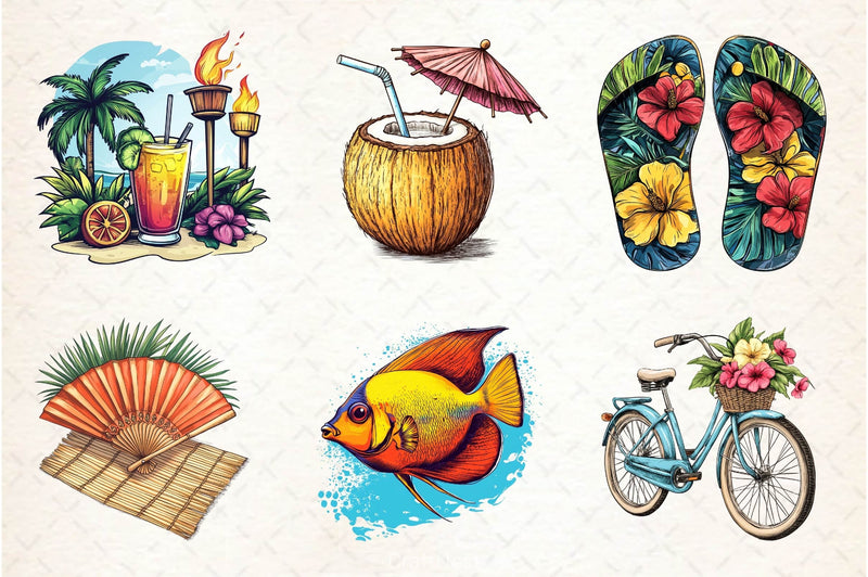 Tropical summer elements perfect for exotic seasonal projects.