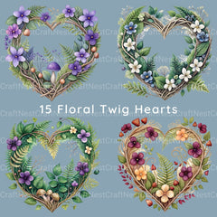 Twig Hearts Clipart Bundle