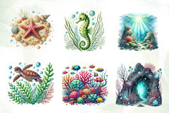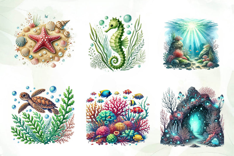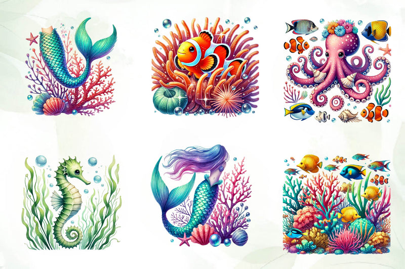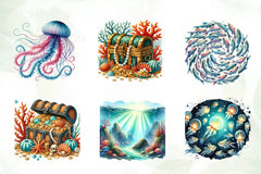 Ocean with this Undersea Clipart Bundle, featuring undersea designs, ideal for marine water crafts.
