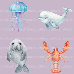 Dive with this Undersea Creatures 12 Clipart Bundle, featuring ocean creature designs, perfect for sea animal crafts.