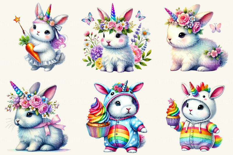 Hop with this Unicorn Bunny Clipart Bundle, featuring magical rabbit designs, perfect for enchanted Easter crafts.