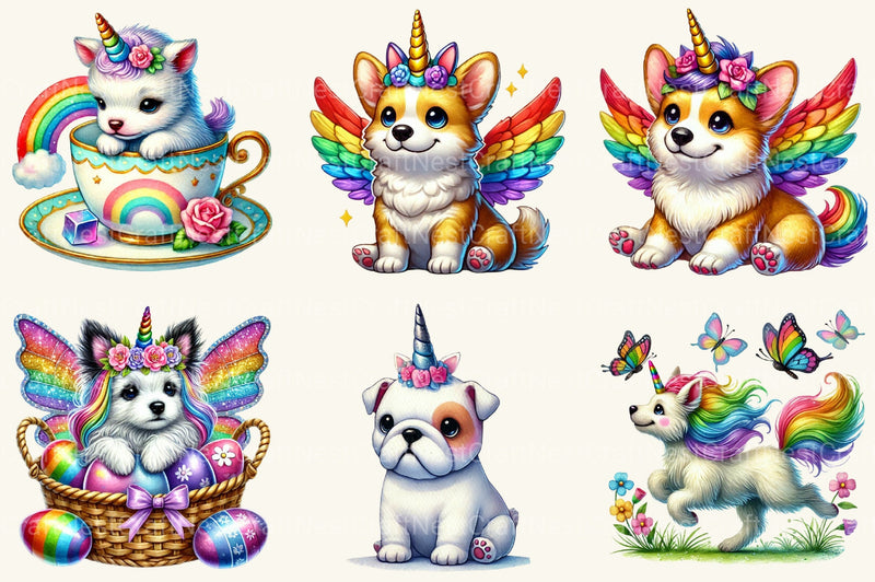 Wag with this Unicorn Dogs Clipart Bundle, featuring magical dog designs, ideal for fantasy pet crafts.