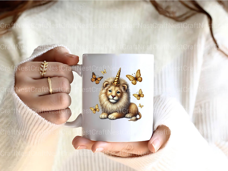 Roar with this Unicorn Lion Clipart Bundle, featuring majestic lion designs, perfect for regal fantasy crafts.